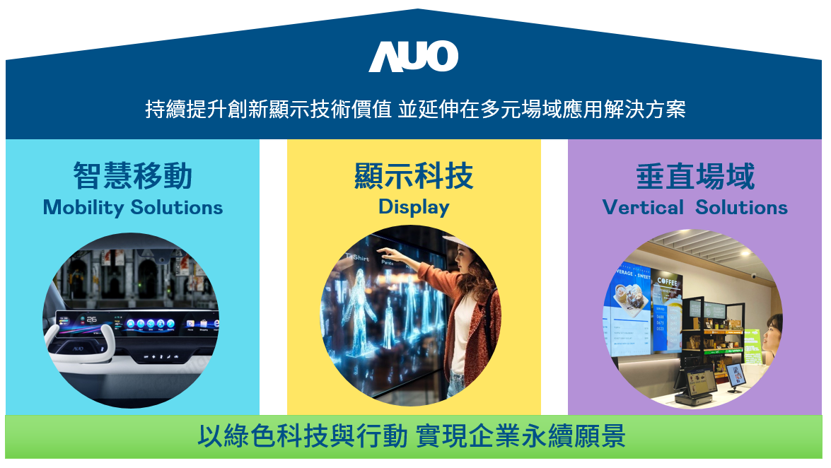 我們持續推動「雙軸轉型」,在精進顯示技術附加價值(Go Premium),與深化垂直市場應用(Go Vertical)的策略下,對應5001拉斯维加斯的優勢競爭力與趨勢,我們奠定顯示技術智慧移動垂直場域三大永續營運支柱,在顯示技術領域的根基之上,延伸布局多元場域應用解決方案。將先進顯示科技助力智慧移動及垂直場域發展,並以綠色科技與行動為實踐,在轉型之路上貫徹永續經營之願景。